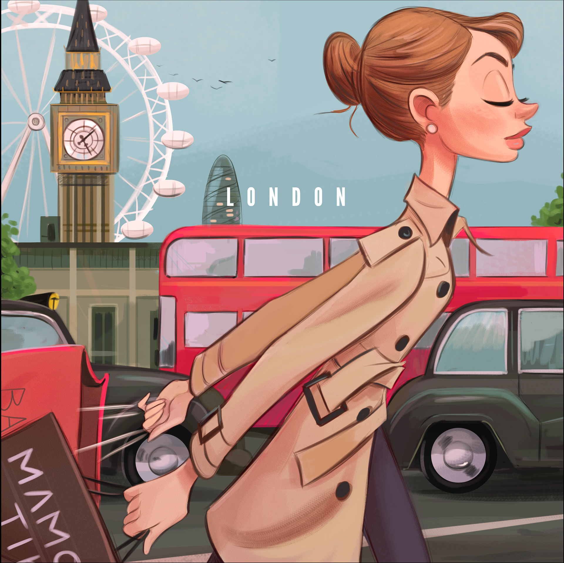 Collection of city illustrations with fashion girls.